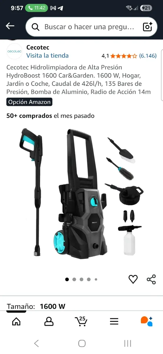 Detalles del productoHidrolimpiadora de alta presión Cecotec HydroBoost 1600.