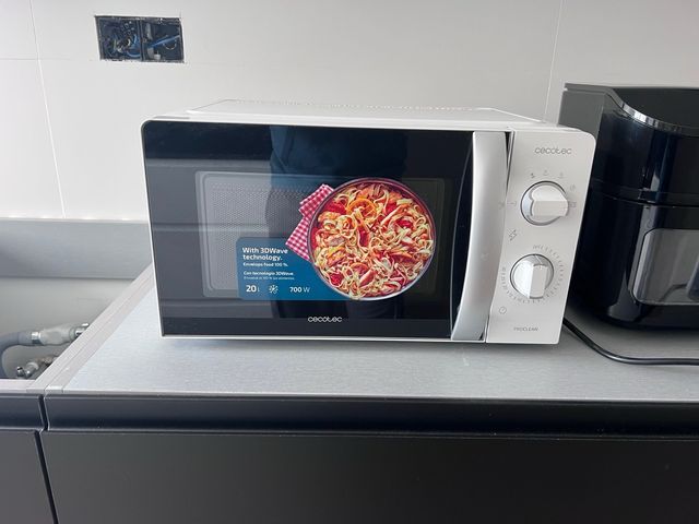 Microondas Cecotec ProClean con tecnología 3DWave. - Capacidad de 20 litros. - Potencia de 700 W. - Diseño moderno en color blanco.