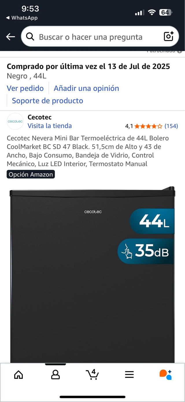 Detalles del productoNevera mini bar Cecotec, modelo Bolero CoolMarket BC SD 47.