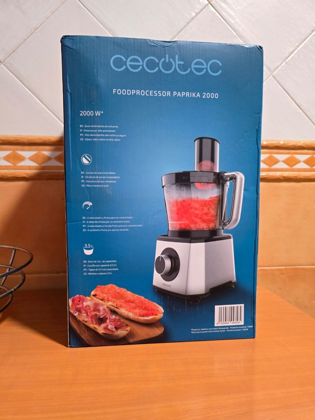 Detalles del productoProcesador de alimentos Cecotec Paprika 2000. Incluye de accesorios cuchilla amasadora, Disco emulsionador, Cuchilla para patatas fritas, Cuchilla cortadora, Soporte para cuchillas y cuchilla ralladora. Nuevo, a estrenar y con factura de Cecotec Oficial.