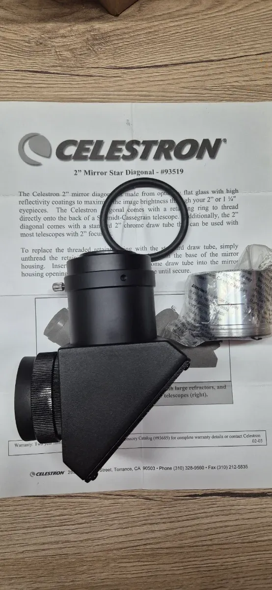 Detalles del productoEspejo diagonal Celestron de 2 pulgadas para telescopios. Sin estrenar. Fabricado con vidrio óptico plano y recubrimientos de alta reflectividad para maximizar el brillo de la imagen.
