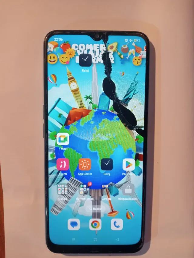 Celular azul y multicolor