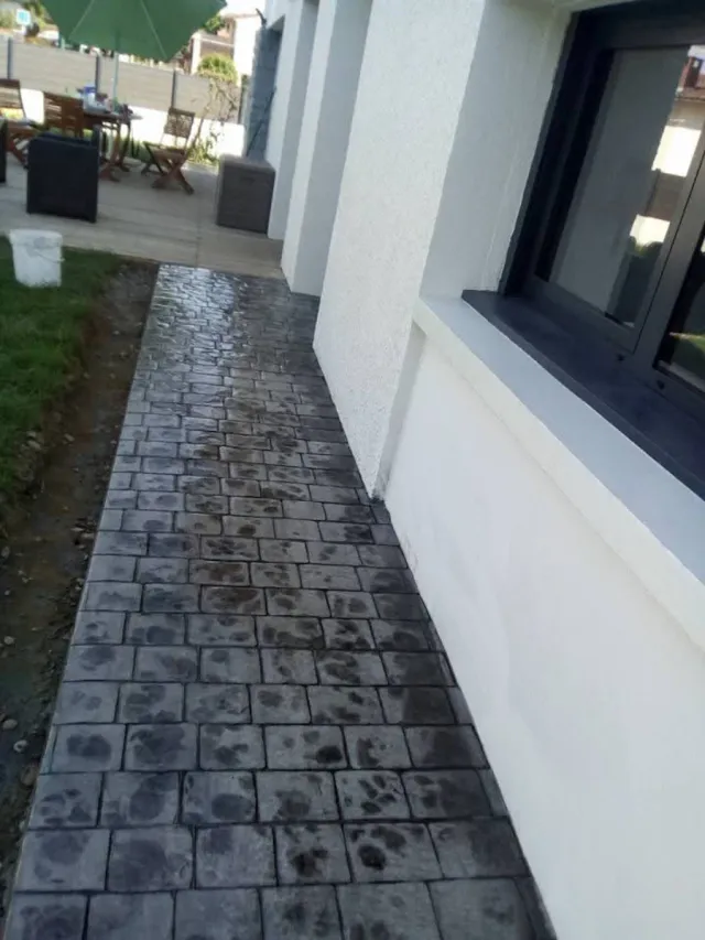 Material de cemento especial para crear superficies con acabado de impresión. - Ideal para caminos, patios y terrazas. - Diseñado para exteriores.