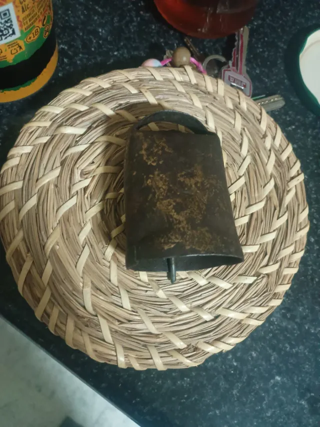 Cencerro antiguo de latón, con un diseño tradicional. - Material: Latón. - Aspecto envejecido.