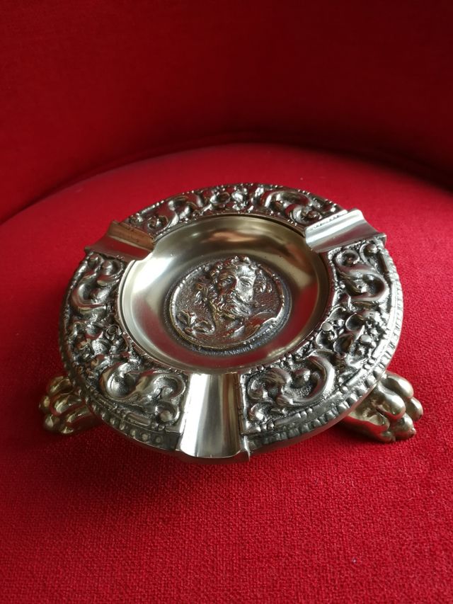 Detalles del productoEspectacular objeto de colección, cenicero antiguo de bronce macizo de fundición, en perfecto estado, restaurado. Tiene mucho detalle y una forma muy original y difícil de encontrar gracias a las patas en forma de garra que hacen una pieza muy soberbia, de gran belleza. Diámetro 15cm y una altura de 4cm.