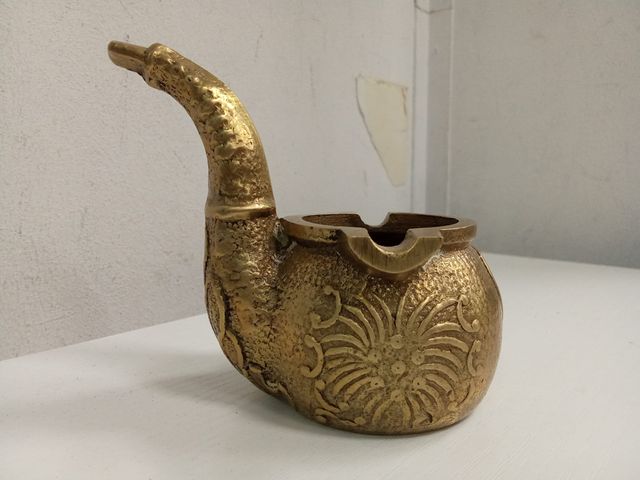 Detalles del productoCenicero vintage de bronce macizo con forma de pipa, pieza única y robusta, cenicero decorativo elaborado en bronce macizo con un acabado dorado, forma de pipa, ideal para coleccionistas de objetos vintage o como un regalo distintivo. Se puede enviar o recoger en Tienda Solidaria Piel de Mariposa MADRID C/Embajadores 35 (+ info en la última foto)