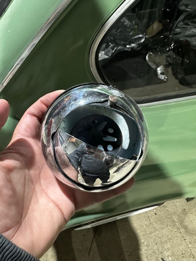 Cenicero de coche con acabado cromado, ideal para vehículos clásicos. - Diseño esférico. - Detalles metálicos.