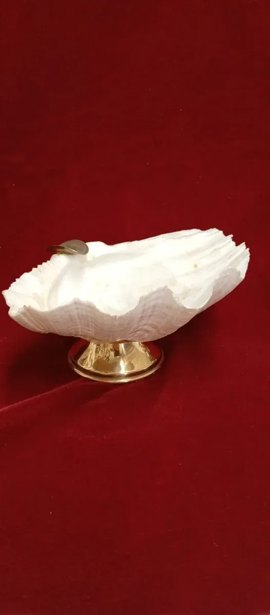 Detalles del productoOriginal cenicero decorativo hecho con una concha marina. La concha descansa sobre una elegante base dorada.