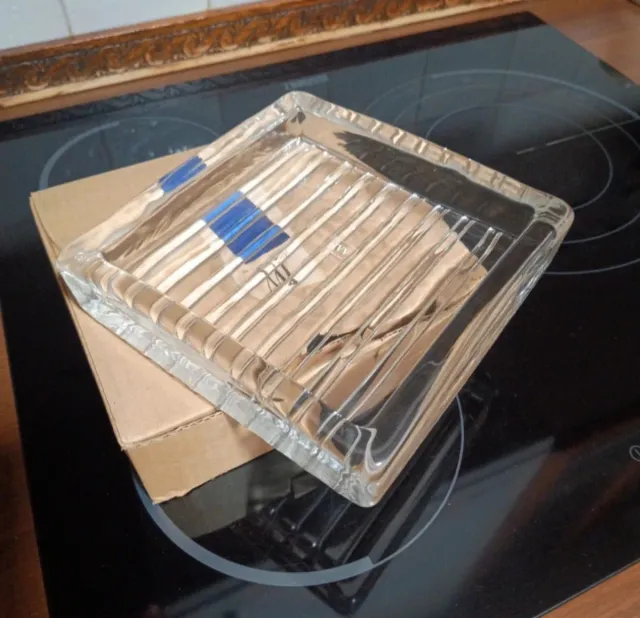 Detalles del productoCenicero de vidrio muy grueso, nuevo a estrenar con su caja original. Marca italiana, La Casa Delle Cose Di Vetro IVV. Muy pesado. Tamaño 18x18cm y 4cm de altura. Pesa 2 kilos y 300 gramos