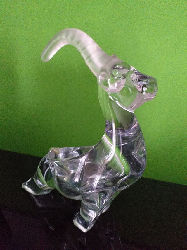 Detalles del productoOriginal cenicero vintage con forma de cabra, fabricado en cristal transparente. El posa cigarros es de plata. Está deteriorado porque le falta uno de los cuernos. Mide 22cm x 15 cm