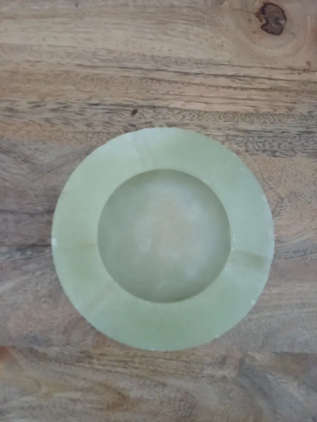 Elegante cenicero de onix verde, perfecto para añadir un toque de distinción a cualquier espacio. Su diseño circular y material natural lo hacen una pieza única.