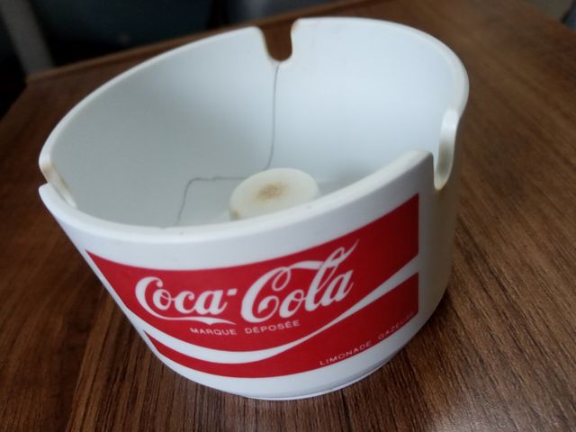 Detalles del productoCenicero clásico redondo retro con logo de Coca Cola. Pasta dura. Tiene una grieta que no impide su llenado, ni es rotura. De ahí su precio. Medidas del producto