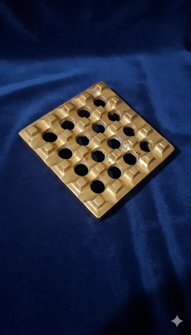 Detalles del productoCenicero vintage con un diseño geométrico y un acabado en latón.