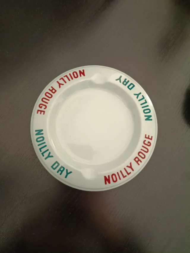Cenicero vintage publicitario de la marca Noilly Prat, específicamente para sus variedades "Dry" y "Rouge".