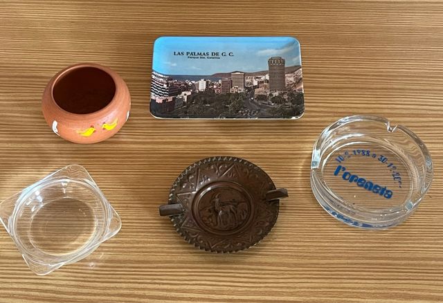 Detalles del productoConjunto de varios ceniceros de diferentes materiales y diseños.