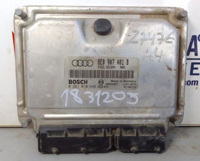 Detalles del productoAUDI A4 BERLINA (8E) 2.5 TDI QUATTRO (132KW) Año 2001 centralita motor uce. Referencia 8E0907401B. Observaciones Bosch 0281010446 edc15um 0002. Código interno 1831205.
