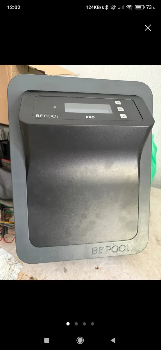 Centralita de control BS Pool modelo PRO. Diseñada para la gestión de piscinas. - Panel frontal con pantalla. - Botones de control. - Carcasa de plástico resistente.