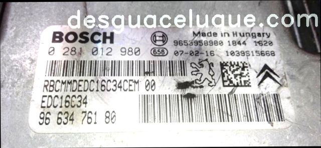 CV21-375.68 CENTRALITA DE MOTOR CITROEN C-4 PICASSO 1.6 HDI CENTRALITAS SALPICADERO 0281012980-9663476180-9HZ 9HZ