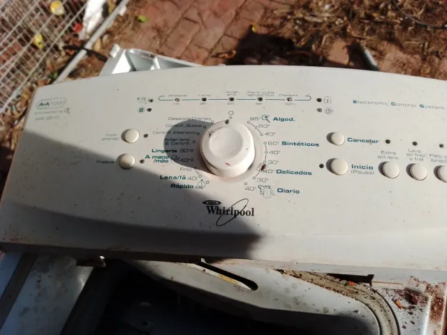Panel de control para lavadora Whirlpool. - Modelo AWE 6510. - Sistema de control electrónico. - Incluye selector de programas y botones de función.