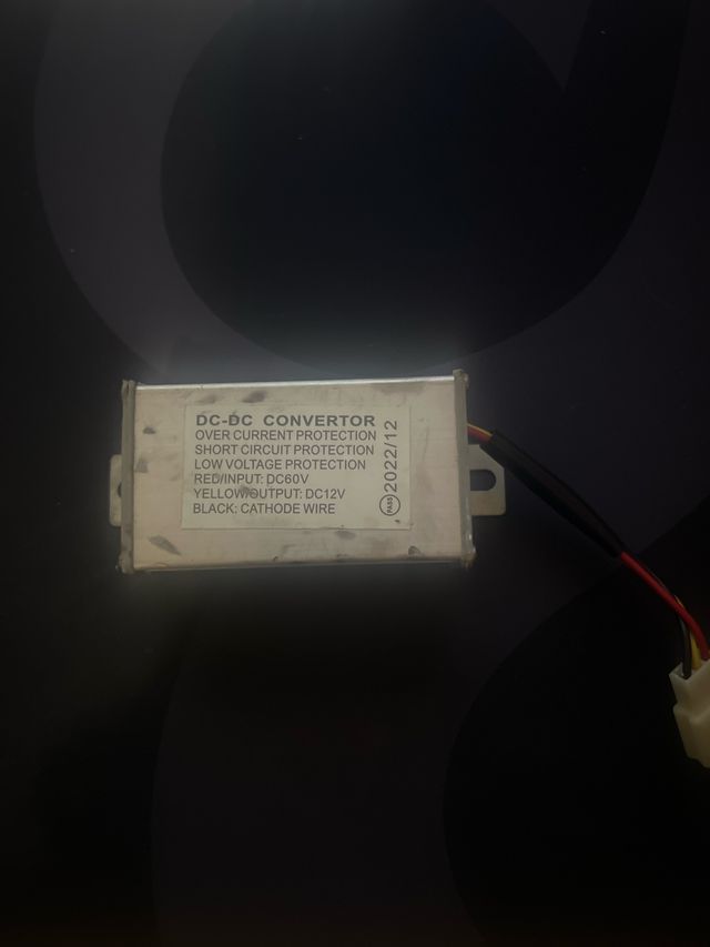 Detalles del productoCentralita convertidora DC-DC para patinete eléctrico. Permite convertir la entrada de 60V a una salida de 12V.