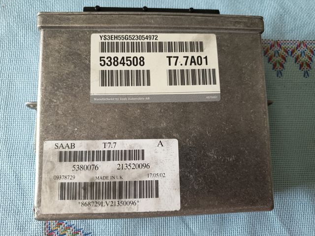 Centralita original para Saab 9-5 Aero T7.7 en buen estado. Años 1998-2007 - Modelo: T7.7 - Número de pieza: 5380076, 213520096 - Fabricada en Reino Unido