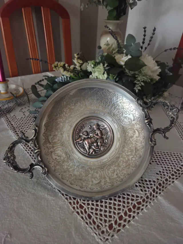 Elegante centro de mesa antiguo con un diseño intrincado.