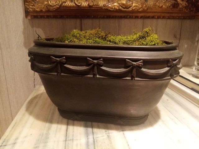 Elegante centro de mesa antiguo realizado en resinas naturales y polvo de mármol. De la prestigiosa marca de artesanía Acanto. Medidas: 26x14x16 cms