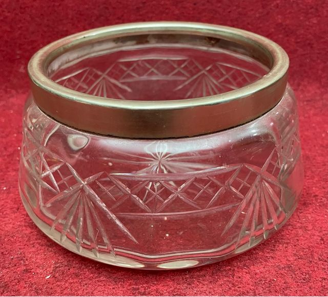 Elegante centro de mesa antiguo con detalles en cristal tallado y plata. Medidas en las fotos