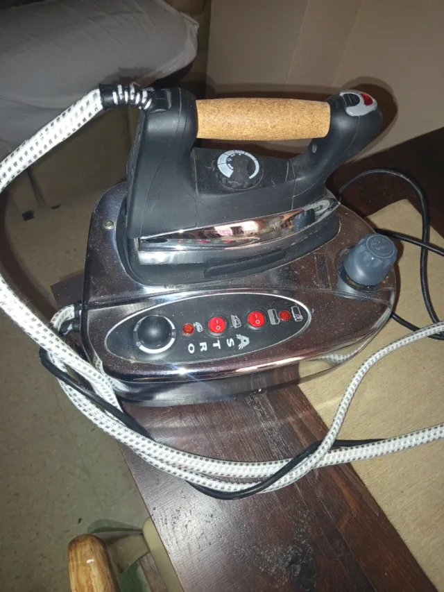 Centro de planchado con base metálica y mango de corcho. - Base cromada. - Mango de corcho. - Indicadores luminosos.