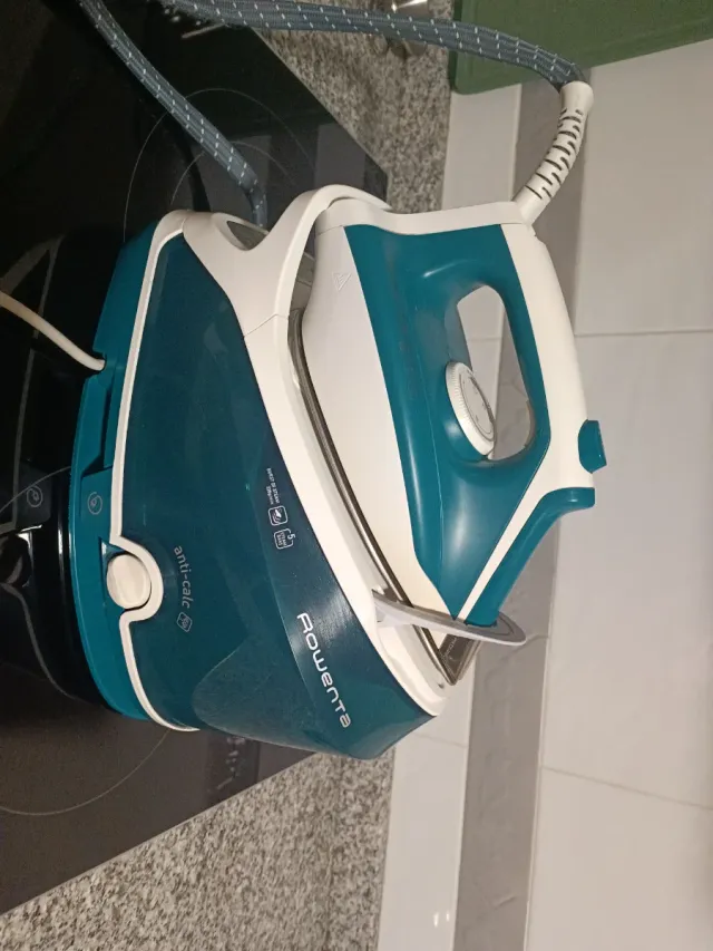Detalles del productoCentro de planchado Rowenta en color blanco y turquesa. Cuenta con sistema antical.