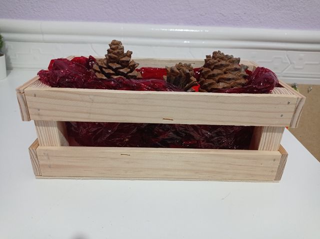 centro de mesa , realizado en madera tipo caja de frutas, se puede elegir el tamaño el precio corresponde a las medidas aproximadas 25x15 cm. alto 10 cm