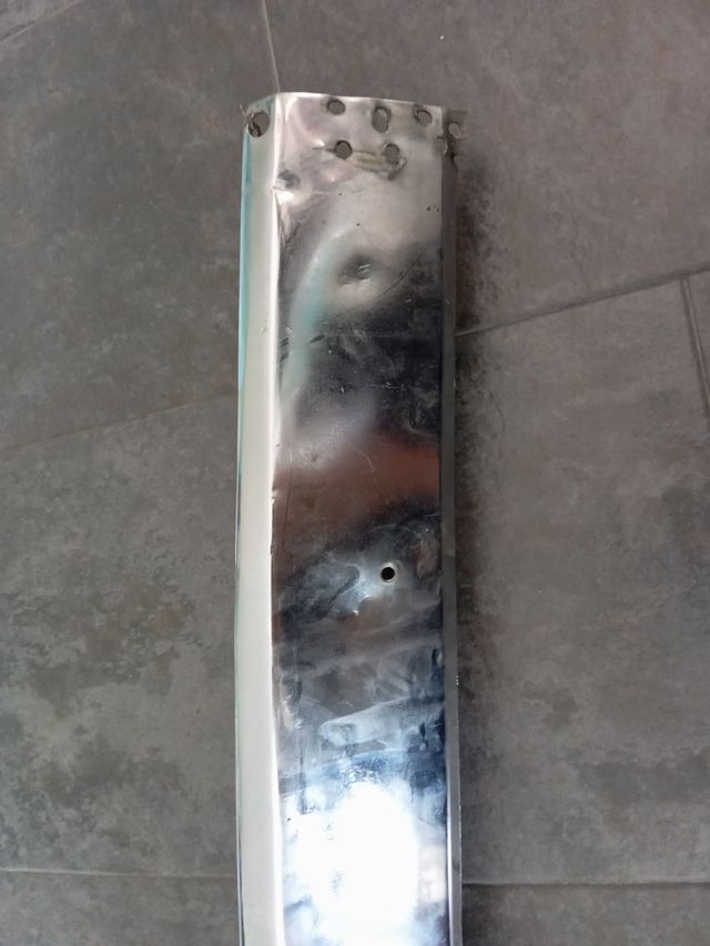 Detalles del productoPieza central para el paragolpes de un Seat 1400 C o 1500. Usado lleva bollos en la zona no vista de la matrícula que una vez puesto no se ve y lo tapa la matrícula y las punteras las mascotas tapan los agujeros laterales .