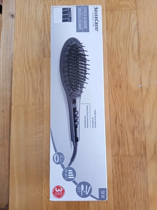 Detalles del productoCepillo alisador de la marca SilverCrest, modelo Personal Care. Cerdas con revestimiento de cerámica de alta calidad para alisar el cabello de una sola pasada. Cuenta con pantalla LED para la visualización de la temperatura. Muy fácil de manejar.