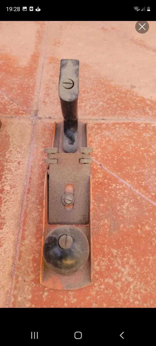 Cepillo de carpintero vintage, ideal para trabajos de ebanistería o como pieza de colección. - Cuerpo de madera y metal. - Ajustes metálicos. - Hoja de corte.
