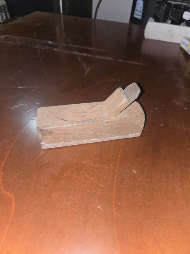 Herramienta manual de madera para carpintería. - Cuerpo de madera. - Hoja de metal. - Diseño clásico.