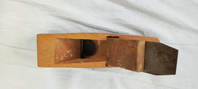 Herramienta manual de carpintería. Regalo, con el de madera, el metálico rojo - Cuerpo de madera. - Hoja metálica expuesta.