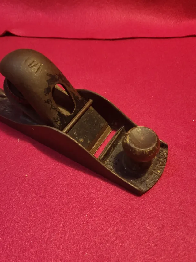 Cepillo de carpintero Stanley modelo 110. Una herramienta clásica para trabajos de madera. - Cuerpo de hierro fundido. - Mango de madera. - Hoja de acero.