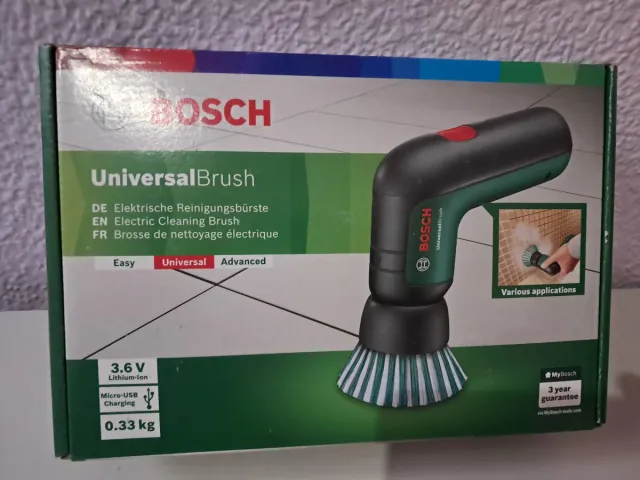 Cepillo de limpieza eléctrico Bosch UniversalBrush. - Voltaje: 3.6 V - Batería: Ion-litio - Carga: Micro-USB - Peso: 0.33 kg