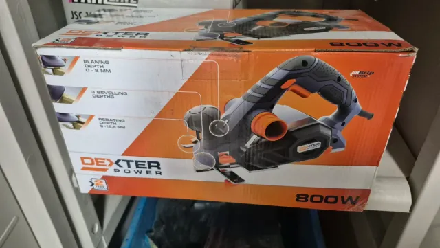 Detalles del productoCepillo eléctrico Dexter Power con motor de 800W. Ideal para trabajos de carpintería.