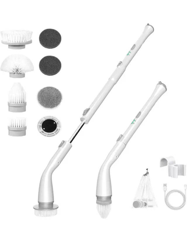 Detalles del productoCepillo de limpieza eléctrico con múltiples cabezales para diferentes usos. Ideal para el hogar.