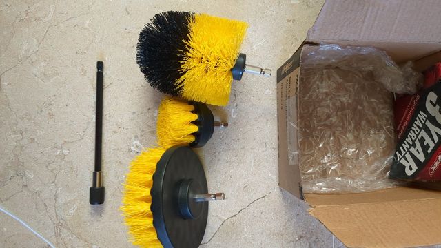 Detalles del productoSet de accesorios para taladro, incluye cepillos y un disco de fregar. Nunca se ha usado.