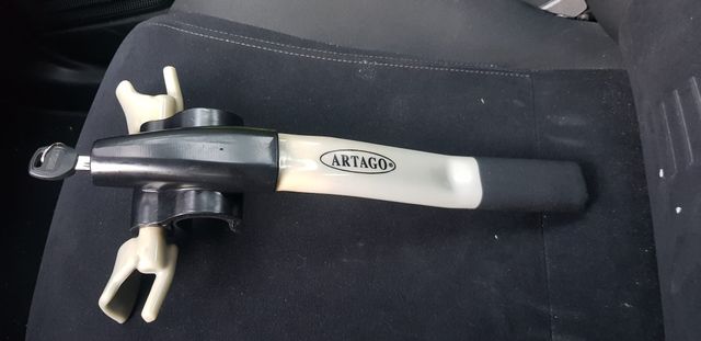 Cepo antirrobo para volante de coche de la marca ARTAGO, modelo 869. - Color negro y blanco. - Incluye llave.