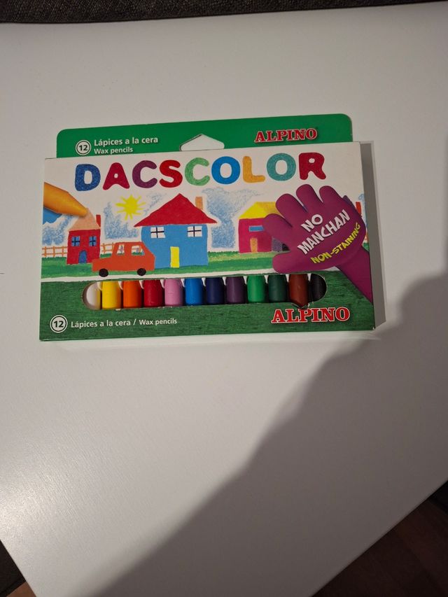 Lápices de cera Daccolor Alpino, sin manchas. Están en su caja original. - 12 ceras de colores. - No manchan (Non-staining). - Ideales para niños.