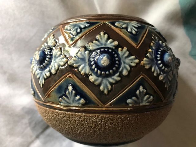 Cerillero antiguo, cerámica pintada. Muy bien conservado. Le falta un trocito pequeño en un pico, pero no se aprecia. Doulton Lambeth, Inglaterra. Antiguo