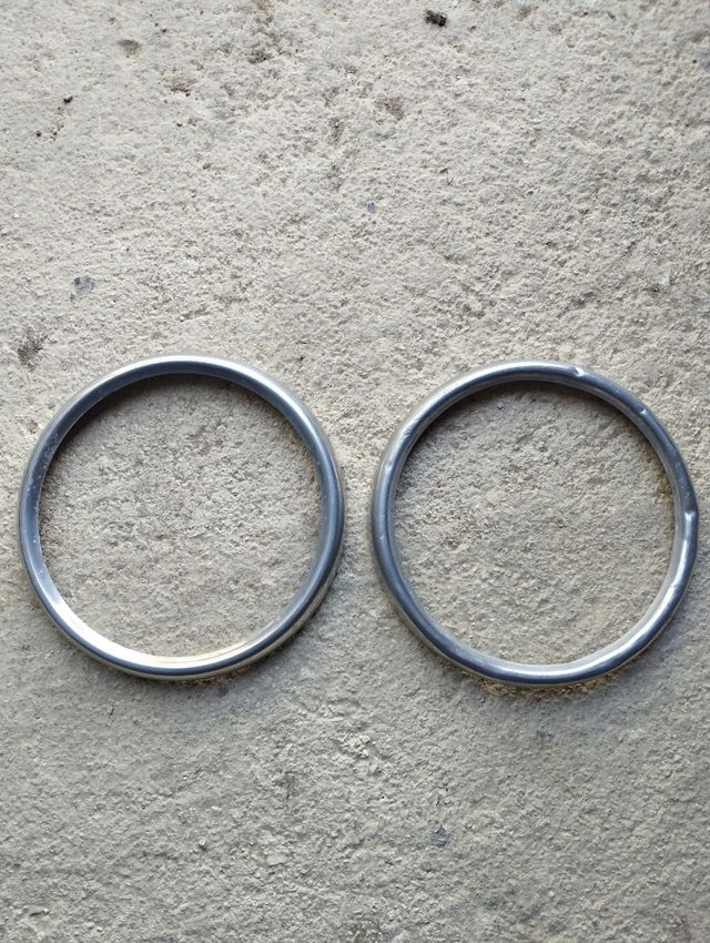 Cerquillos exteriores del Seat 600N o D primera serie. Se pulieron y se guardaron. Tiene una zona un poco picada (se ve en la foto)