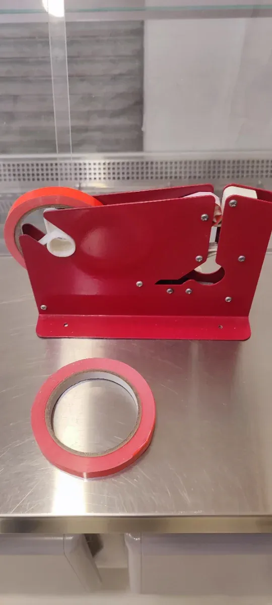 Cerrador de bolsas en color rojo, ideal para sellar paquetes. Incluye un rollo de cinta. - Color: Rojo. - Material: Metal.