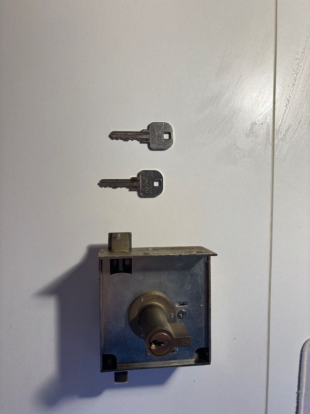 Cerradura de sobreponer Azbe, en buen estado. Incluye dos llaves. - Cerradura de sobreponer. - Dos llaves incluidas. - Acabado metálico.