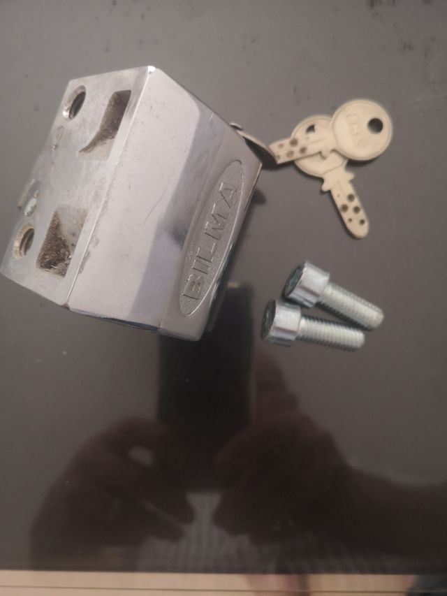 Detalles del productoCerradura de seguridad marca Bilma, fabricada en metal plateado. Incluye dos llaves y dos tornillos para su instalación.