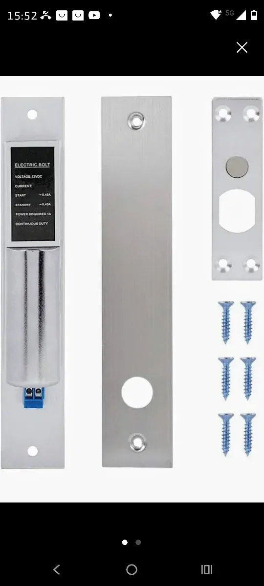 Detalles del productoCerradura eléctrica de seguridad con acabado metálico.