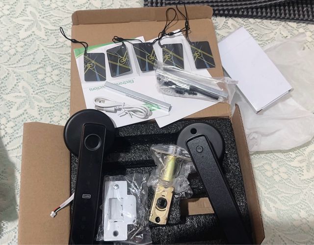 Detalles del productoCerradura de Puerta con Huella Dactilar, Manija de Cerradura de Puerta de Entrada Inteligente sin Llave, Compatible con Aplicaciones, Tarjetas,